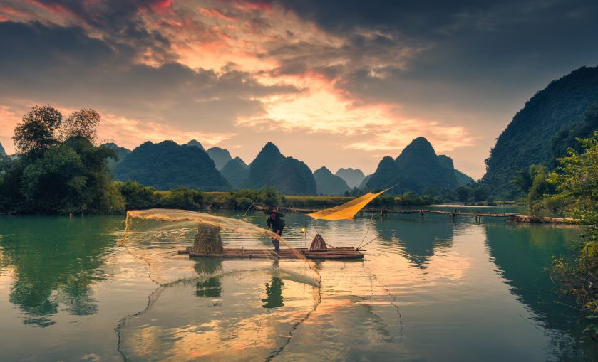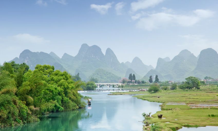 Maak een prachtige boottocht over de Li-rivier naar Yangshuo, langs indrukwekkende karstbergen en landelijke dorpjes. Verken het sfeervolle stadje bij aankomst.