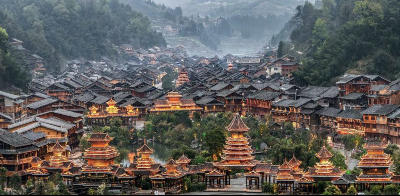 Rijd naar Zhaoxing, de thuisbasis van de Dong-minderheid. Verken de beroemde trommeltorens en bruggen van het dorp.