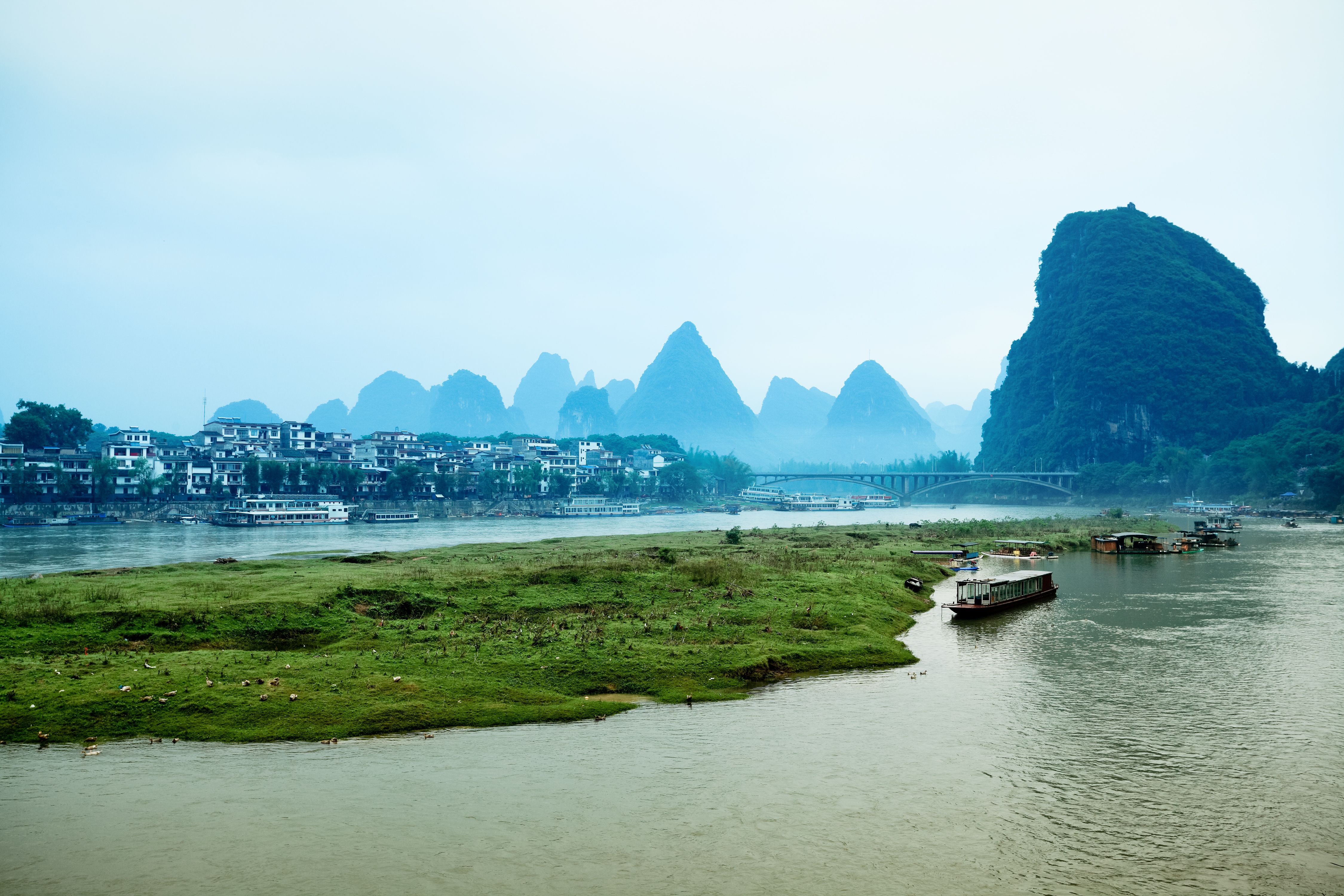 Vandaag verken je met een gids de Li-rivier per fiets en per bamboevlot, met uitzicht op de beroemde karstbergen.